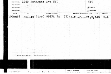 The 1950 census places Robert again at 1985 Bathgate Avenue, New York City. It correctly identifies him as age 18, and states that he worked as a shipping clerk for a newspaper company. This conflicts with his military record which puts him in the army at this time.